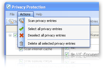 Privacy Protection utility allows you to regain your computer's privacy with ease. This simple tool cleans your tracks with a single click. The program deletes only the types of tracks you select. After your tracks are cleared, your privacy will be more secure and your browser will run much faster.